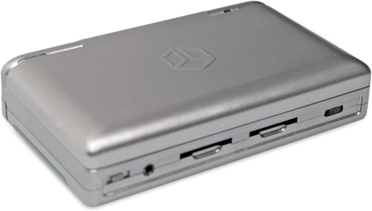 We know movies, music and games chew through disk space, so we didn't put any fixed storage inside the Pandora. Instead, dual SD card slots mean you can double up on the storage and are future-proof up to a possible 4 terabytes of storage at the theoretical 2TB maximum capacity of SDXC cards.